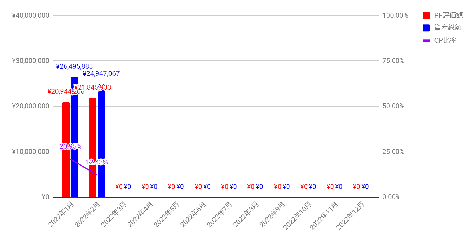 年明けから続く下落基調はまだ収まっていません。下降トレンドに転じていない銘柄もあるので、ポートフォリオ全体としては、相場程の下落は避けれており、ある程度はリスク分散できていると感じます。先月程ではありませんが、今月も単月としては、まあまあな額を仕込んでいます。