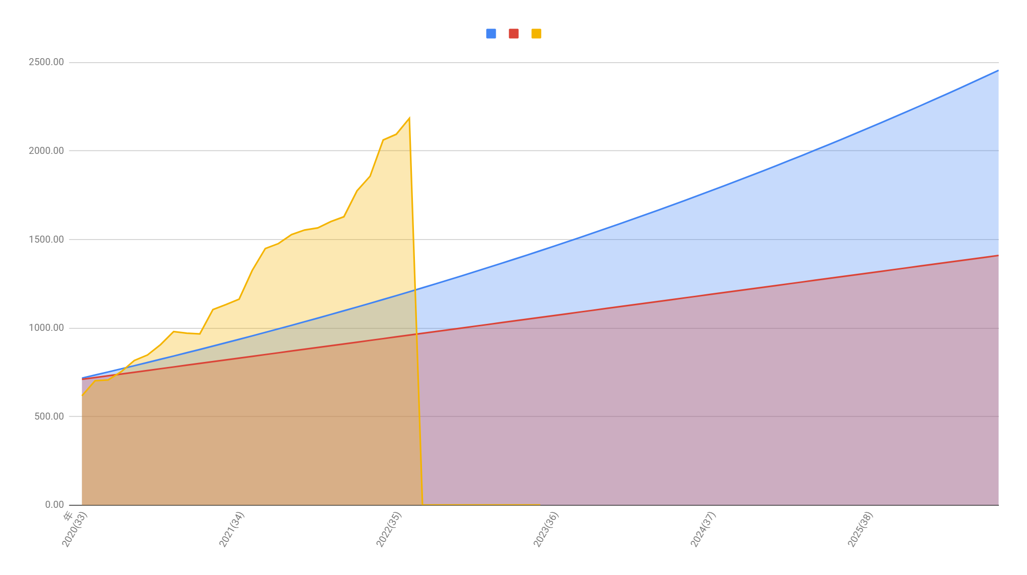 34歳現在の年から49歳までで1億を突破できる見込みです。