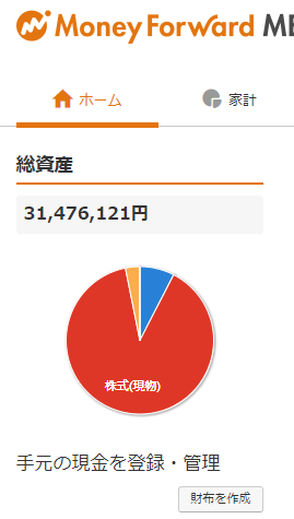 マネーフォワードの総資産の画面になります。