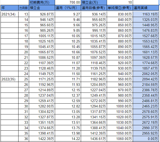 毎月の積立金:10万(目標値)