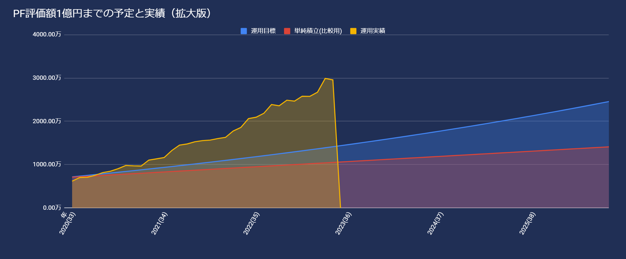 積立と複利効果で1億円突破を目指して、PF評価額の予実管理です。