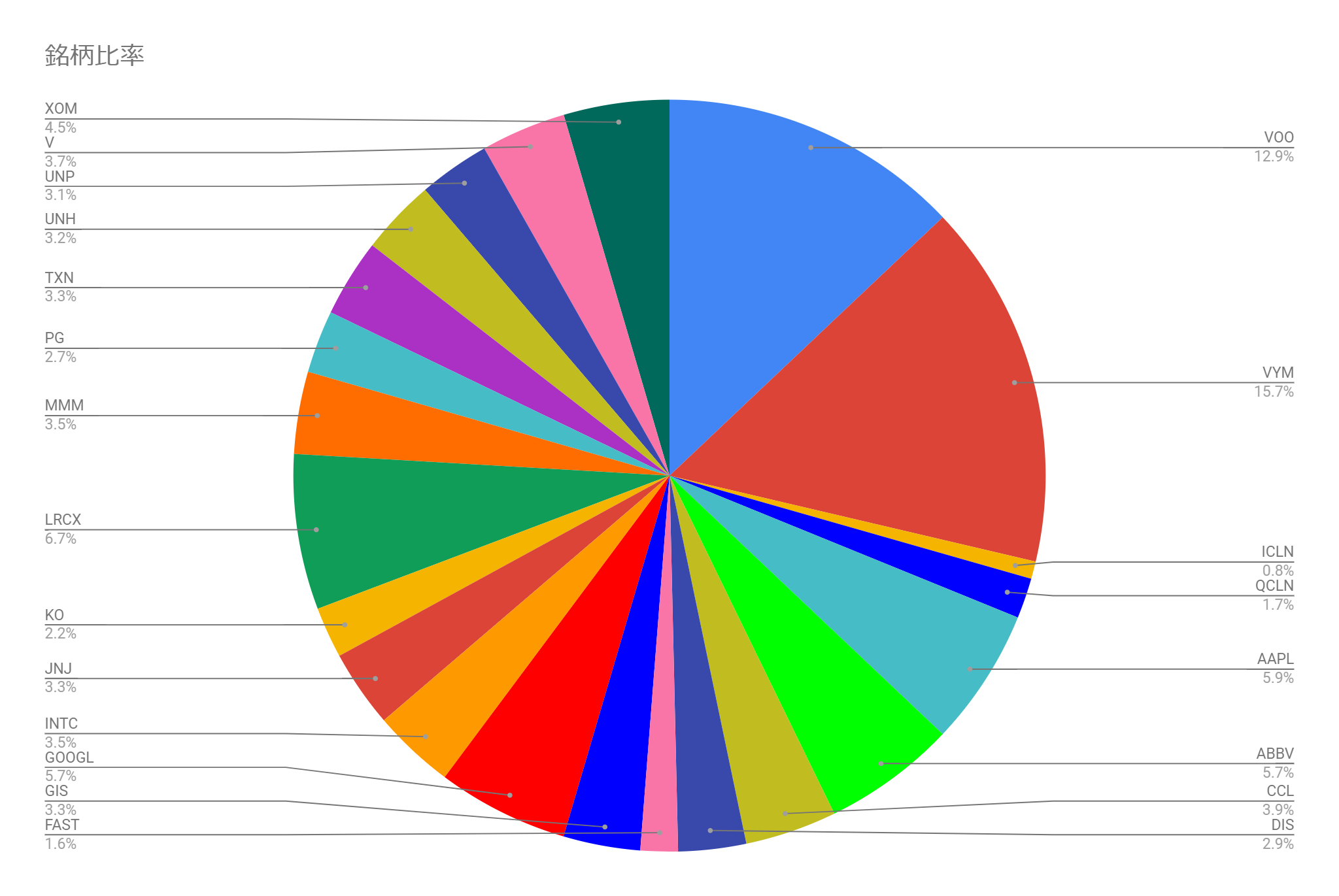ポートフォリオの配当利回りは、2.94%(先月 2.85 %)になります。税引き後では、2.06%(先月 1.99 %)と微増しました。