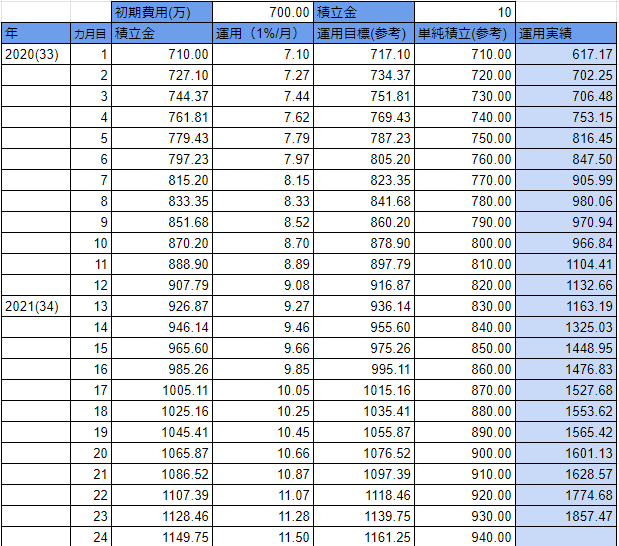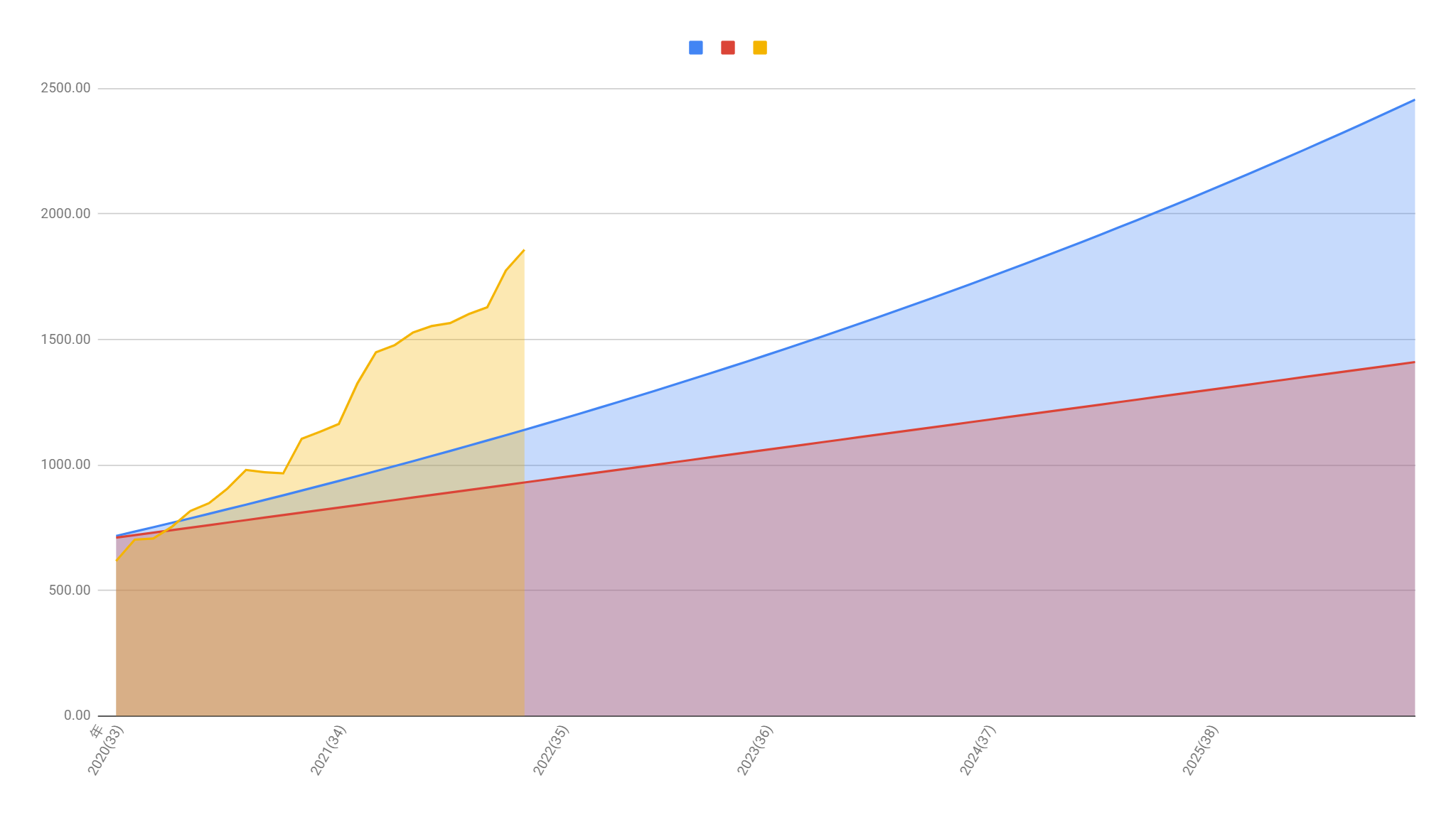 今月は約70万程投入しているので、先月に続きPF評価額は大きく増加しました。目標値(青ライン)を大幅に超えており、現状は良好です。